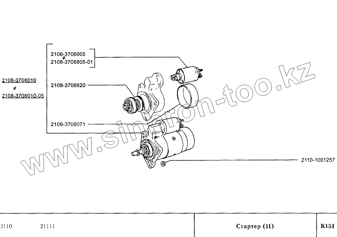 Каталог запасных частей к технике: ВАЗ-2110. Стартер (11)