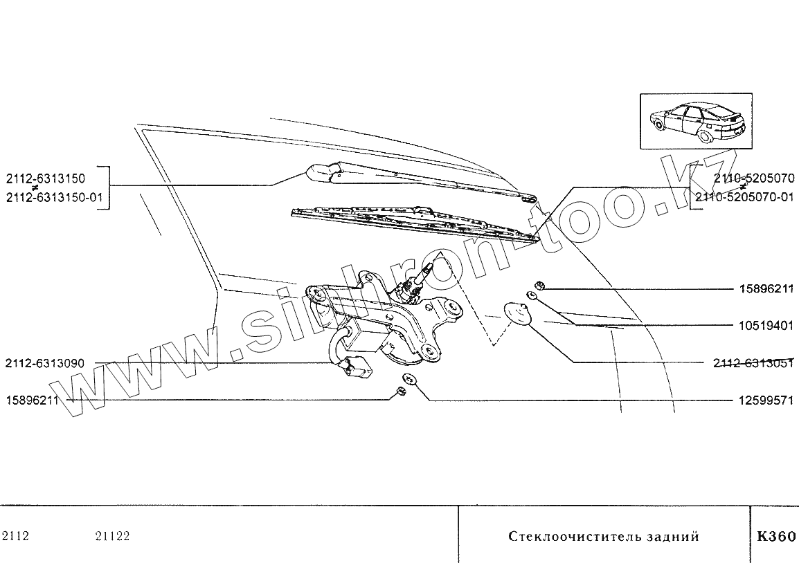 Каталог запасных частей к технике: ВАЗ-2110. Стеклоочиститель задний