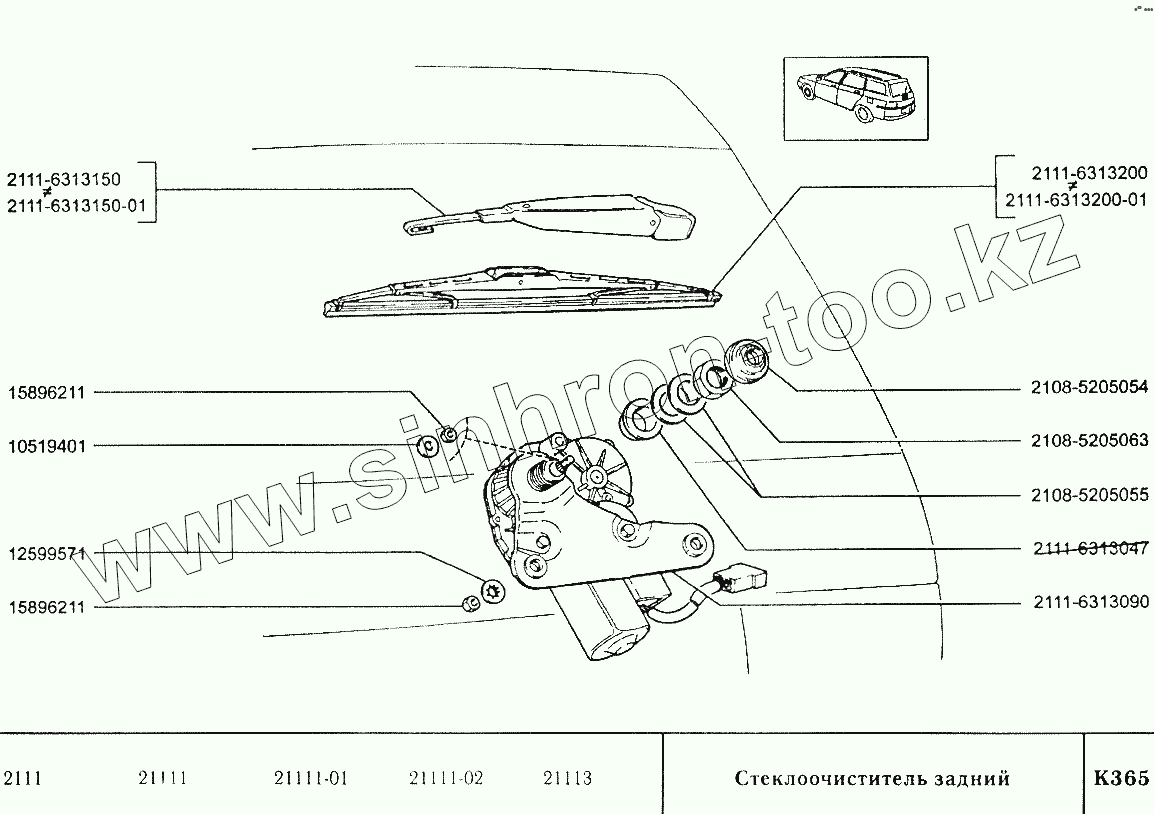 Каталог запасных частей к технике: ВАЗ-2110. Стеклоочиститель задний
