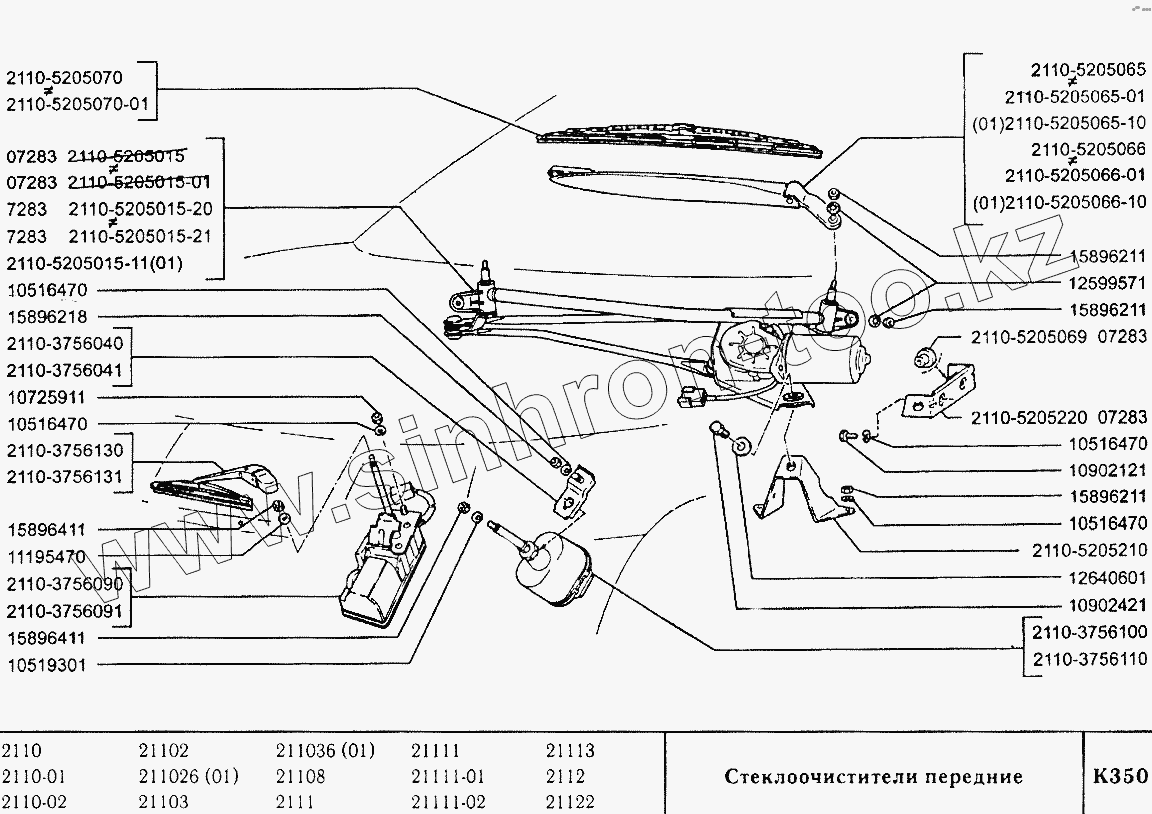 Каталог запасных частей к технике: ВАЗ-2110. Стеклоочистители передние