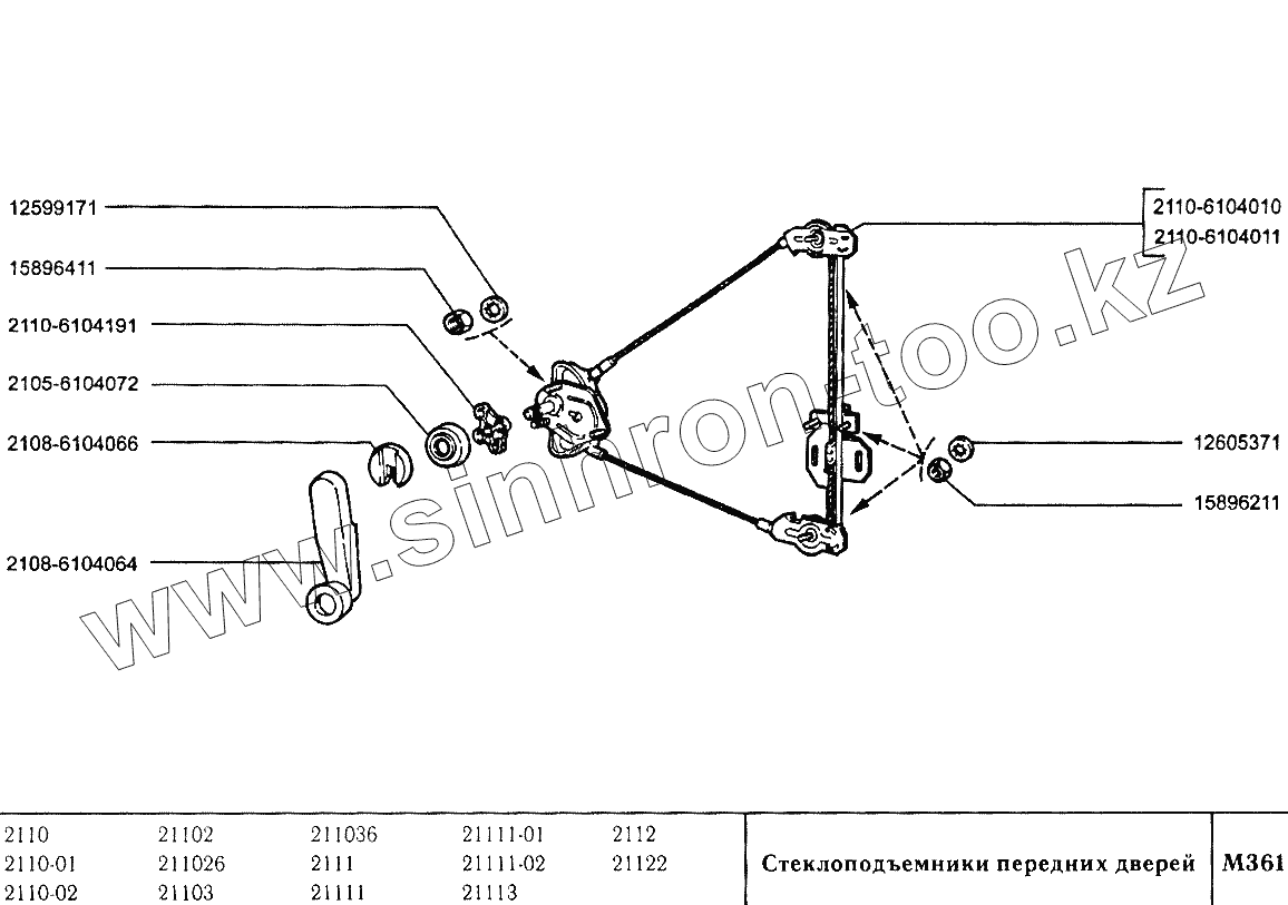 Каталог запасных частей к технике: ВАЗ-2110. Стеклоподъемники передних дверей