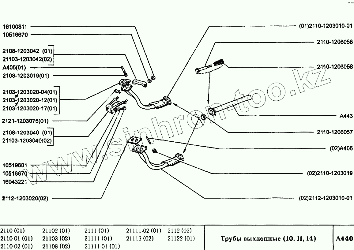 Каталог запасных частей к технике: ВАЗ-2110. Трубы выхлопные (10, 11, 14)