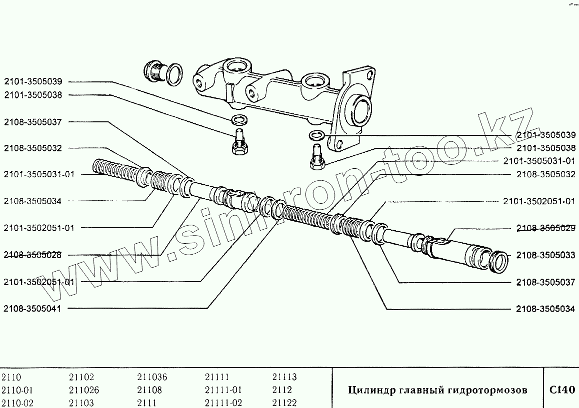 Каталог запасных частей к технике: ВАЗ-2110. Цилиндр главный гидротормозов