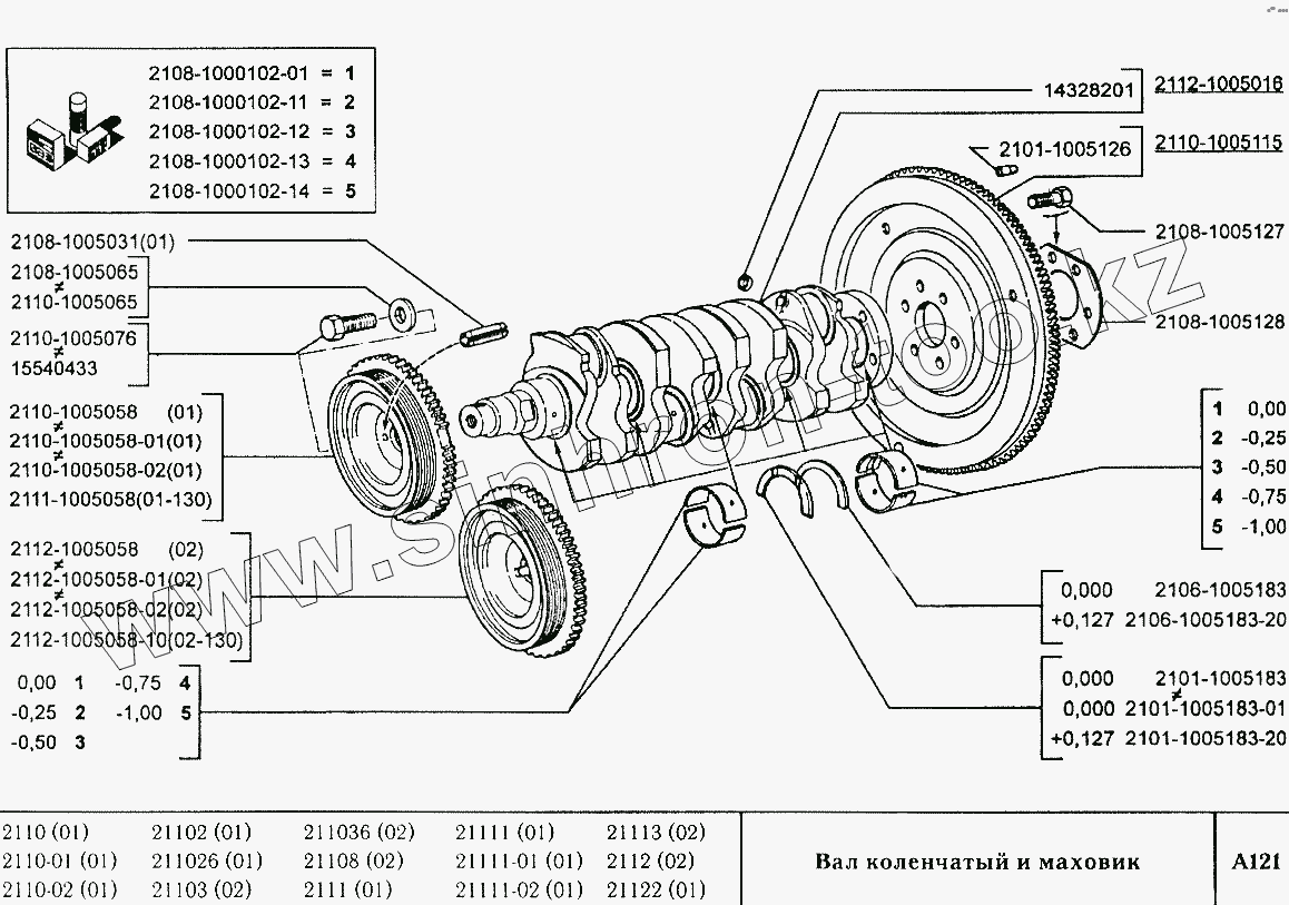 Каталог запасных частей к технике: ВАЗ-2110. Вал коленчатый и маховик
