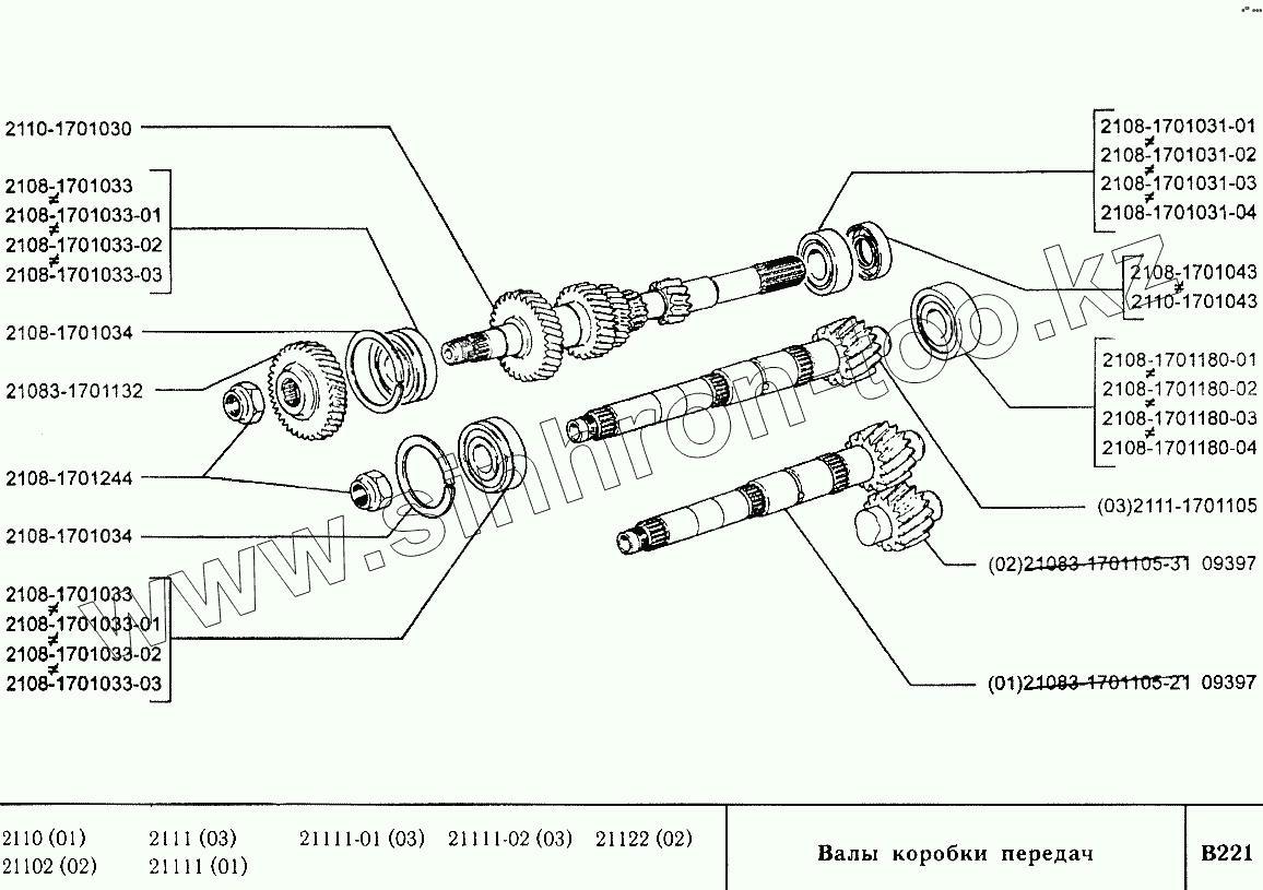 Каталог запасных частей к технике: ВАЗ-2110. Валы коробки передач