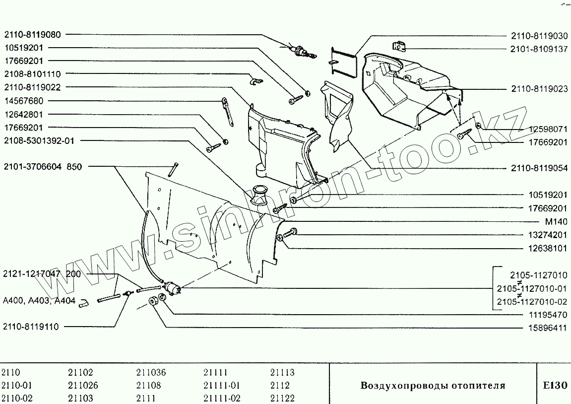 Каталог запасных частей к технике: ВАЗ-2110. Воздухопроводы отопителя