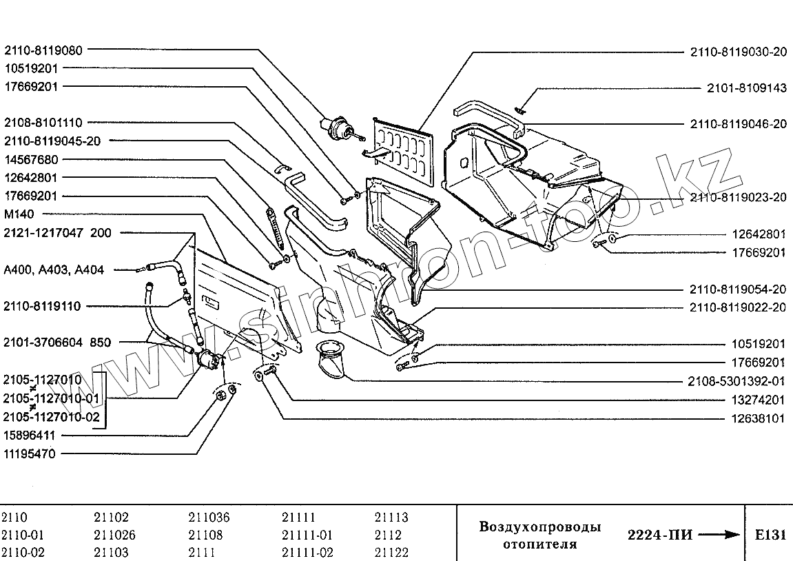 Каталог запасных частей к технике: ВАЗ-2110. Воздухопроводы отопителя
