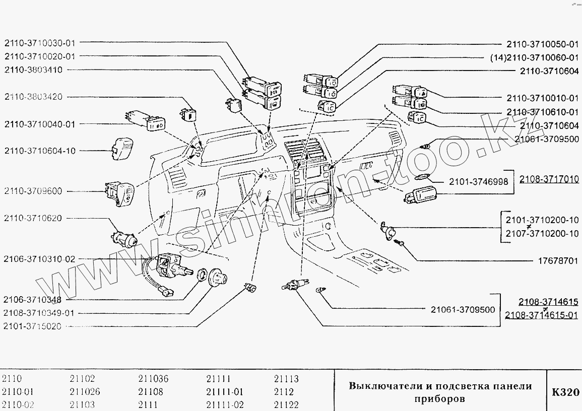 Каталог запасных частей к технике: ВАЗ-2110. Выключатели и подсветка панели приборов