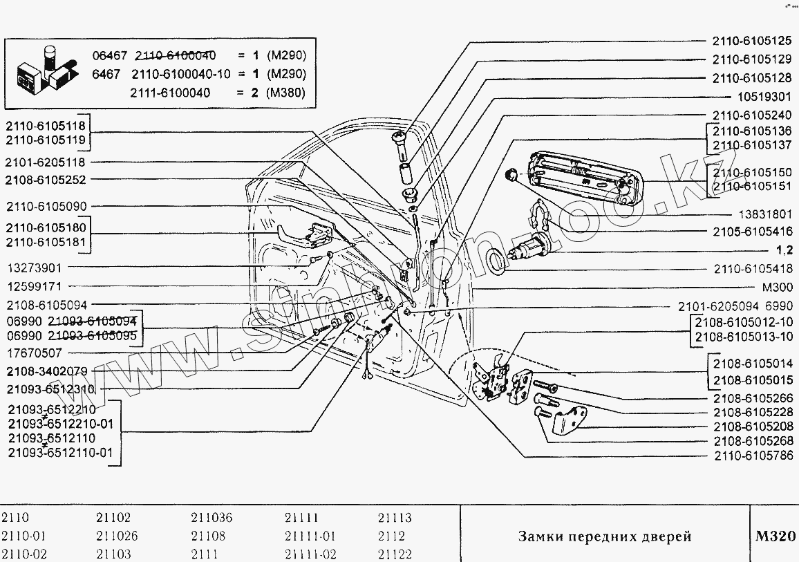 Каталог запасных частей к технике: ВАЗ-2110. Замки передних дверей