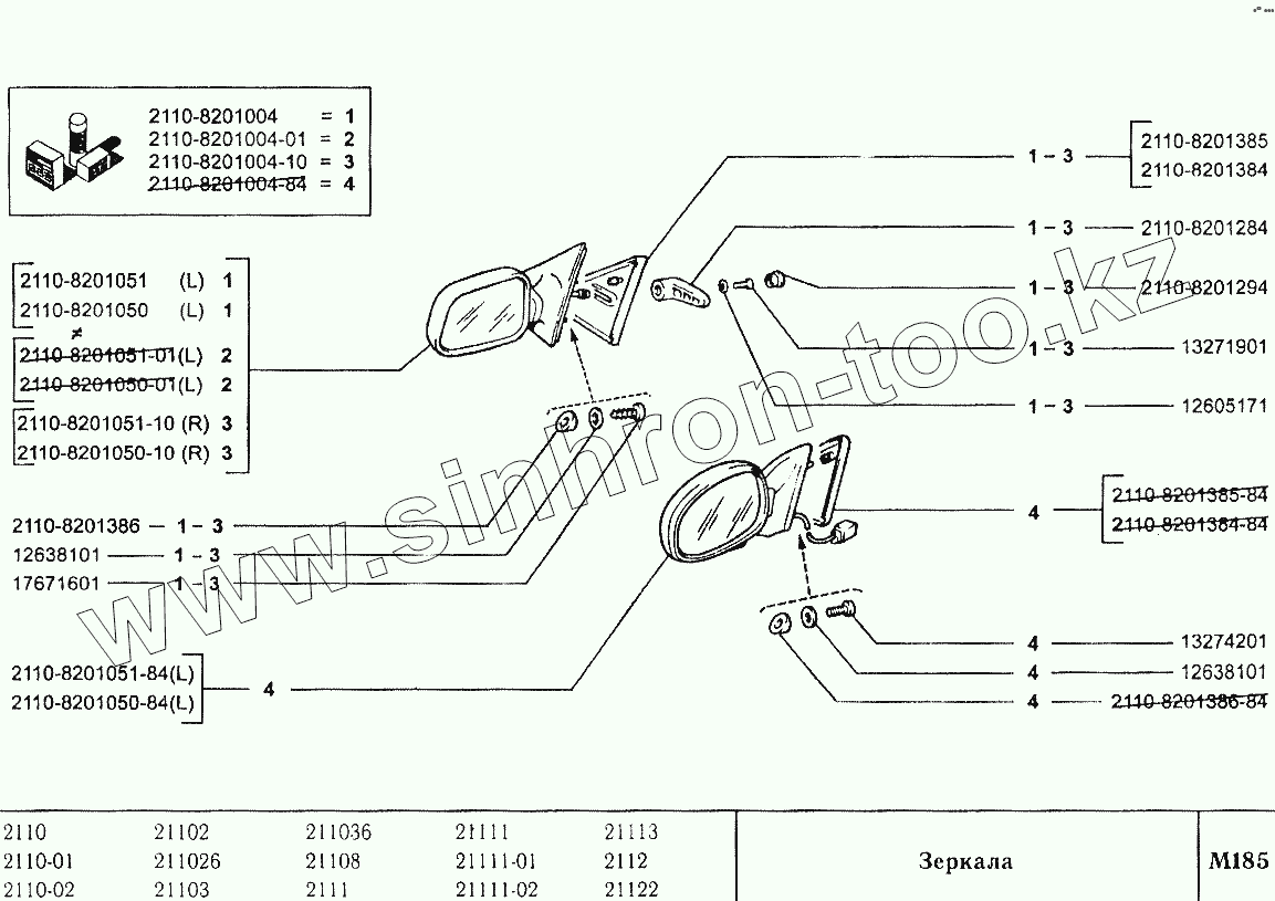 Каталог запасных частей к технике: ВАЗ-2110. Зеркала