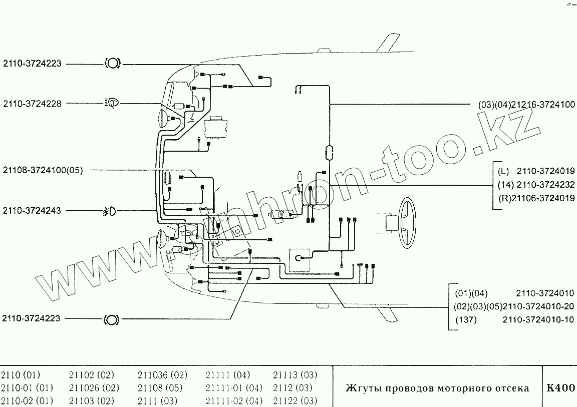 Каталог запасных частей к технике: ВАЗ-2110. Жгуты проводов моторного отсека