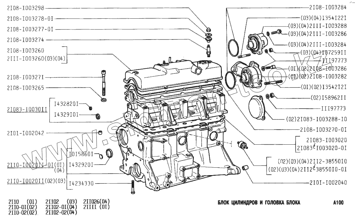 Каталог запасных частей к технике: ВАЗ-2111. Блок цилиндров и головка блока