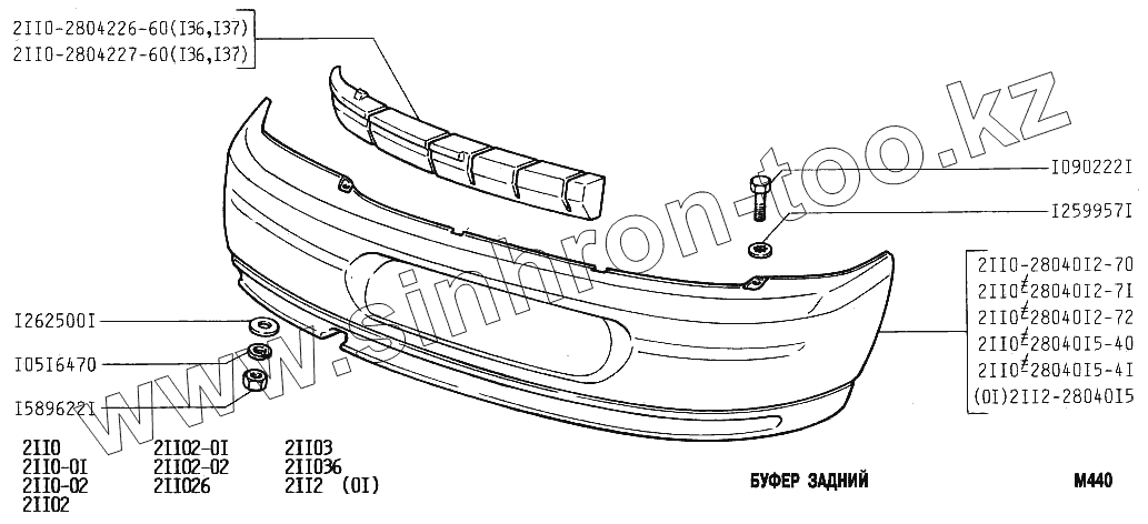 Каталог запасных частей к технике: ВАЗ-2111. Буфер задний