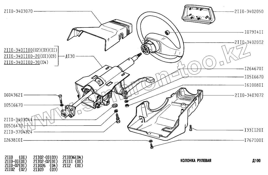 Каталог запасных частей к технике: ВАЗ-2111. Колонка рулевая