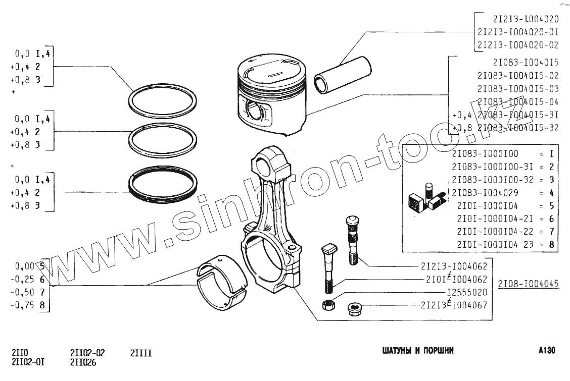 Каталог запасных частей к технике: ВАЗ-2111. Шатуны и поршни