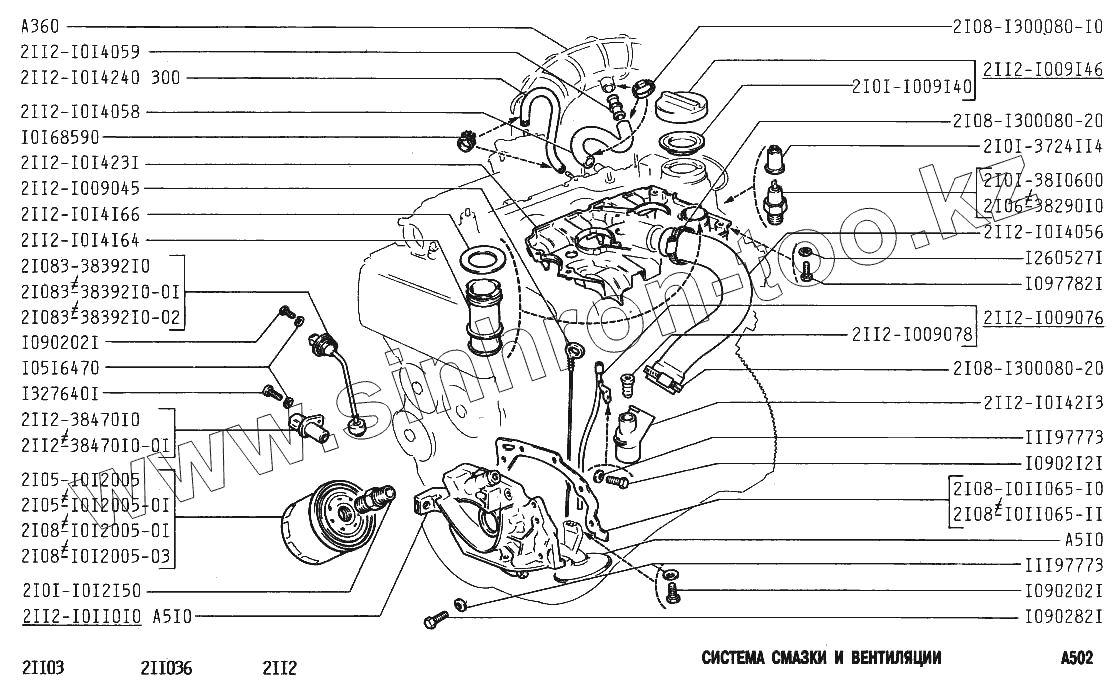 Каталог запасных частей к технике: ВАЗ-2111. Система смазки и вентиляции