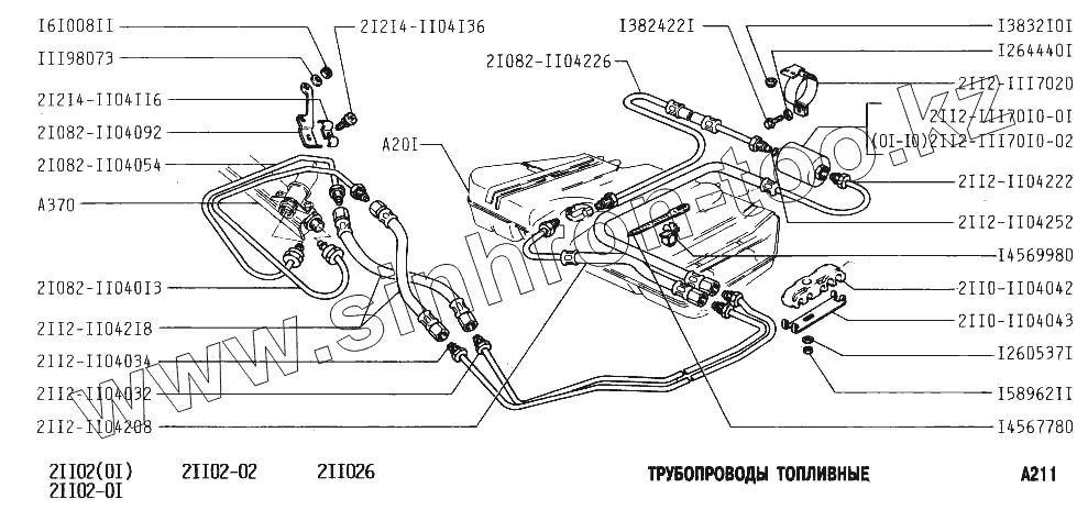 Каталог запасных частей к технике: ВАЗ-2111. Трубопроводы топливные