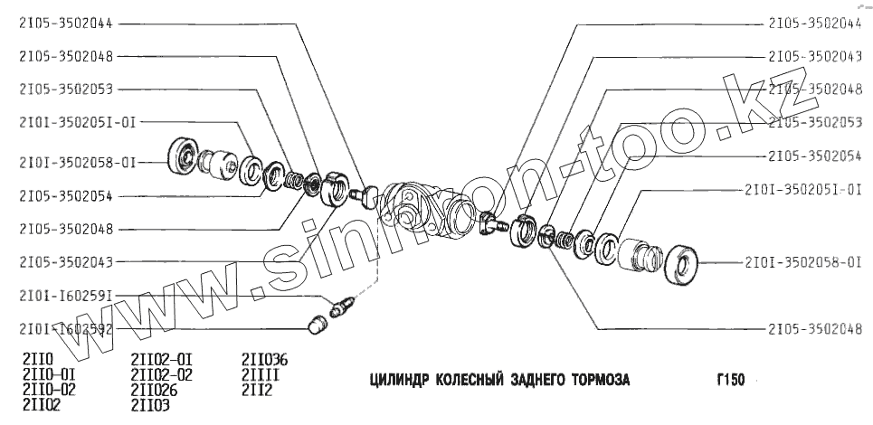 Каталог запасных частей к технике: ВАЗ-2111. Цилиндр колесный заднего тормоза