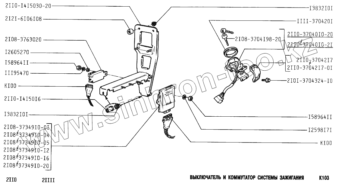 Каталог запасных частей к технике: ВАЗ-2111. Выключатель и коммутатор системы зажигания