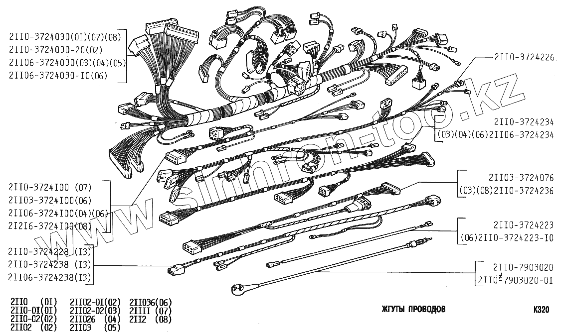 Каталог запасных частей к технике: ВАЗ-2111. Жгуты проводов