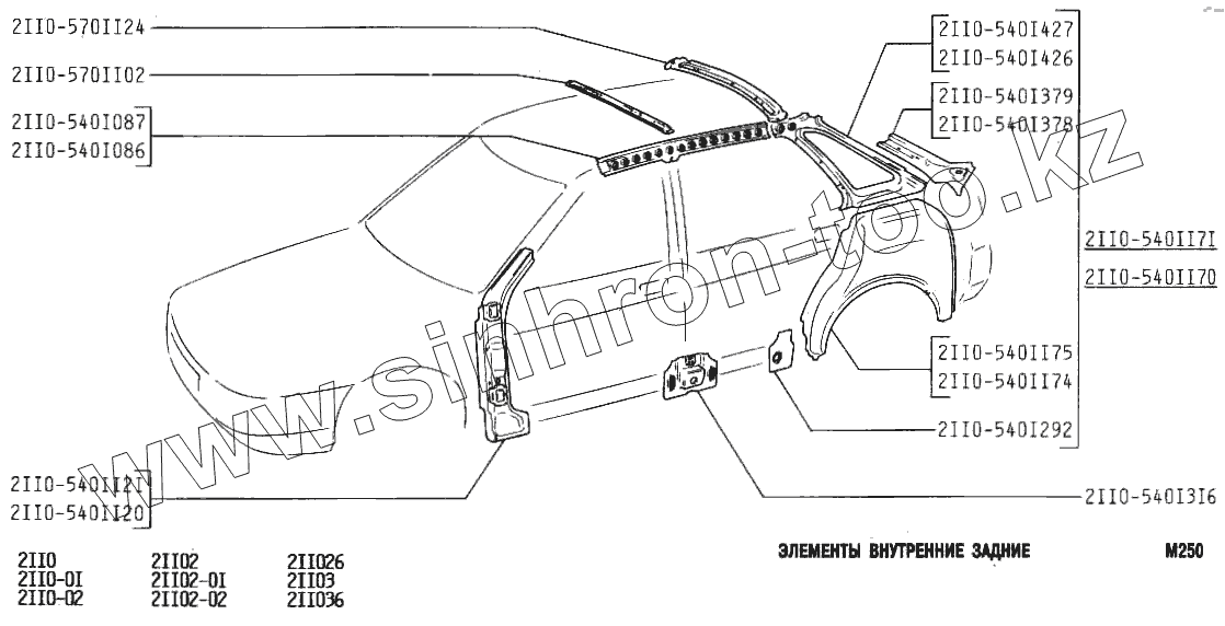 Каталог запасных частей к технике: ВАЗ-2112. Элементы внутренние задние