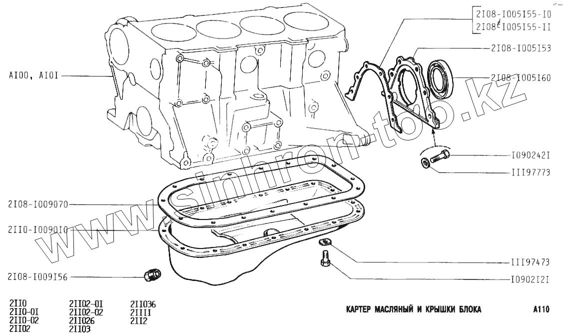 Каталог запасных частей к технике: ВАЗ-2112. Картер масляный и крышки блока