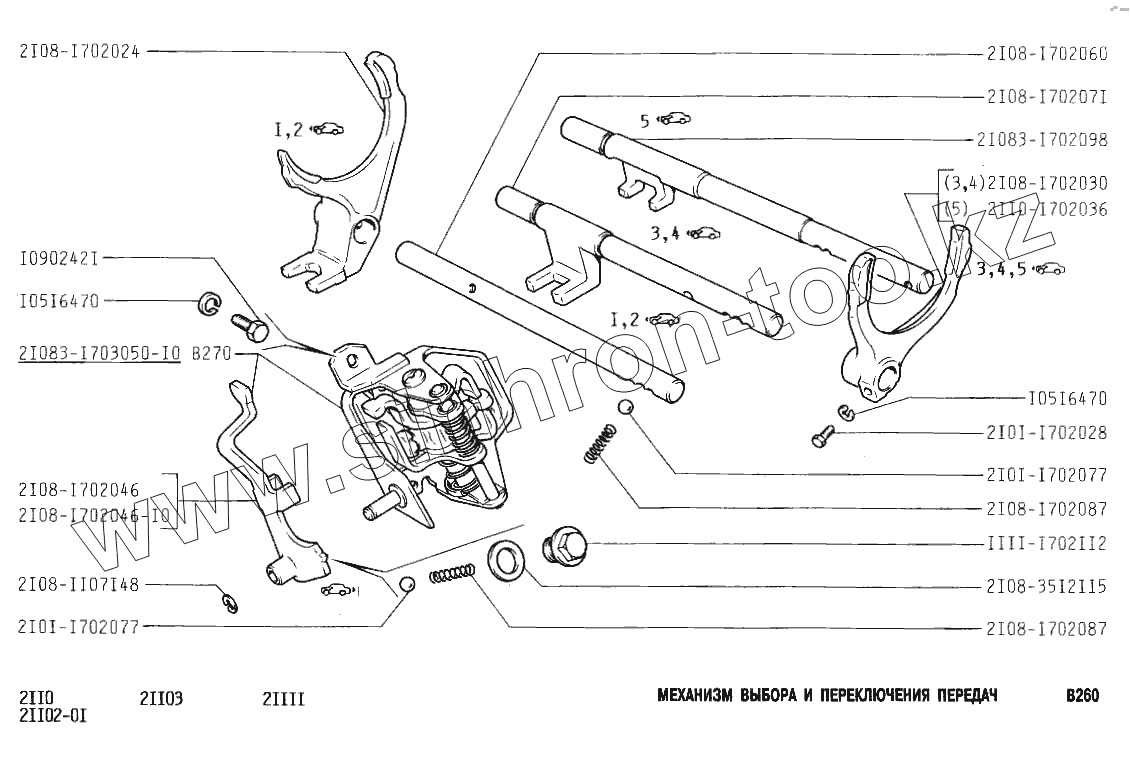 Каталог запасных частей к технике: ВАЗ-2112. Механизм выбора и переключения передач