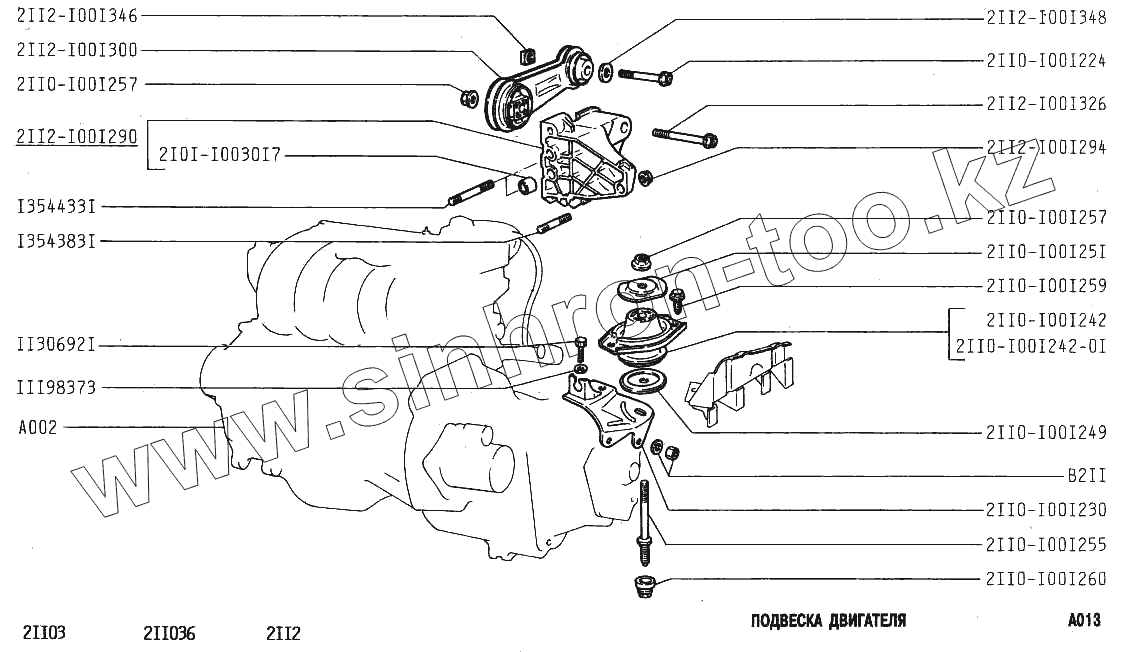 Каталог запасных частей к технике: ВАЗ-2112. Подвеска двигателя