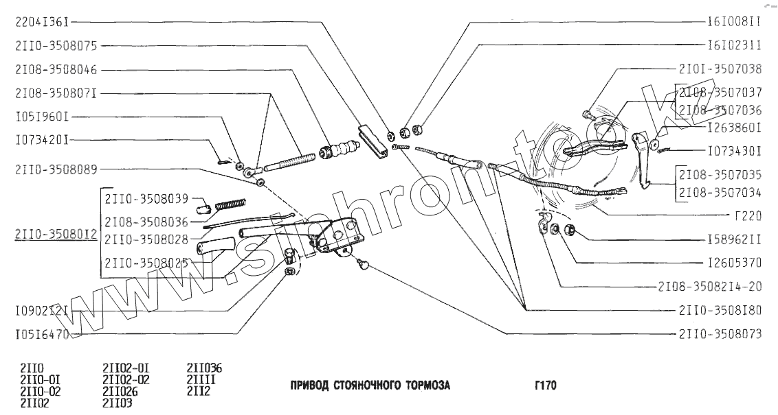 Каталог запасных частей к технике: ВАЗ-2112. Привод стояночного тормоза