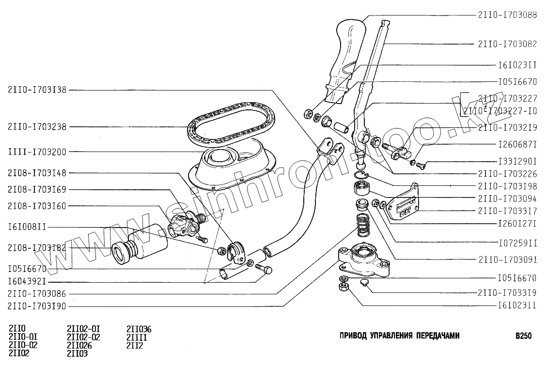 Каталог запасных частей к технике: ВАЗ-2112. Привод управления передачами