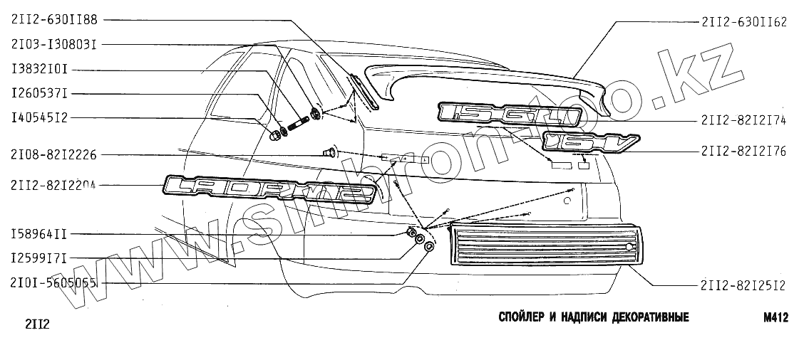 Каталог запасных частей к технике: ВАЗ-2112. Спойлер и надписи декоративные