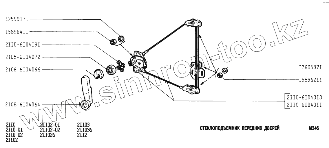 Каталог запасных частей к технике: ВАЗ-2112. Стеклоподъемник передних дверей