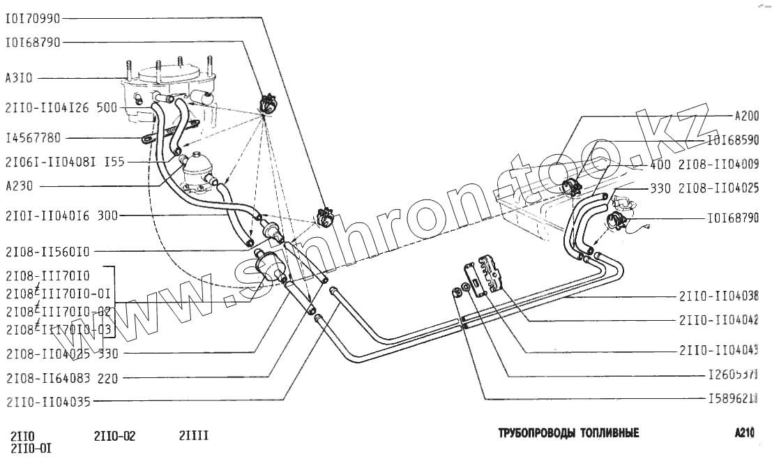 Каталог запасных частей к технике: ВАЗ-2112. Трубопроводы топливные