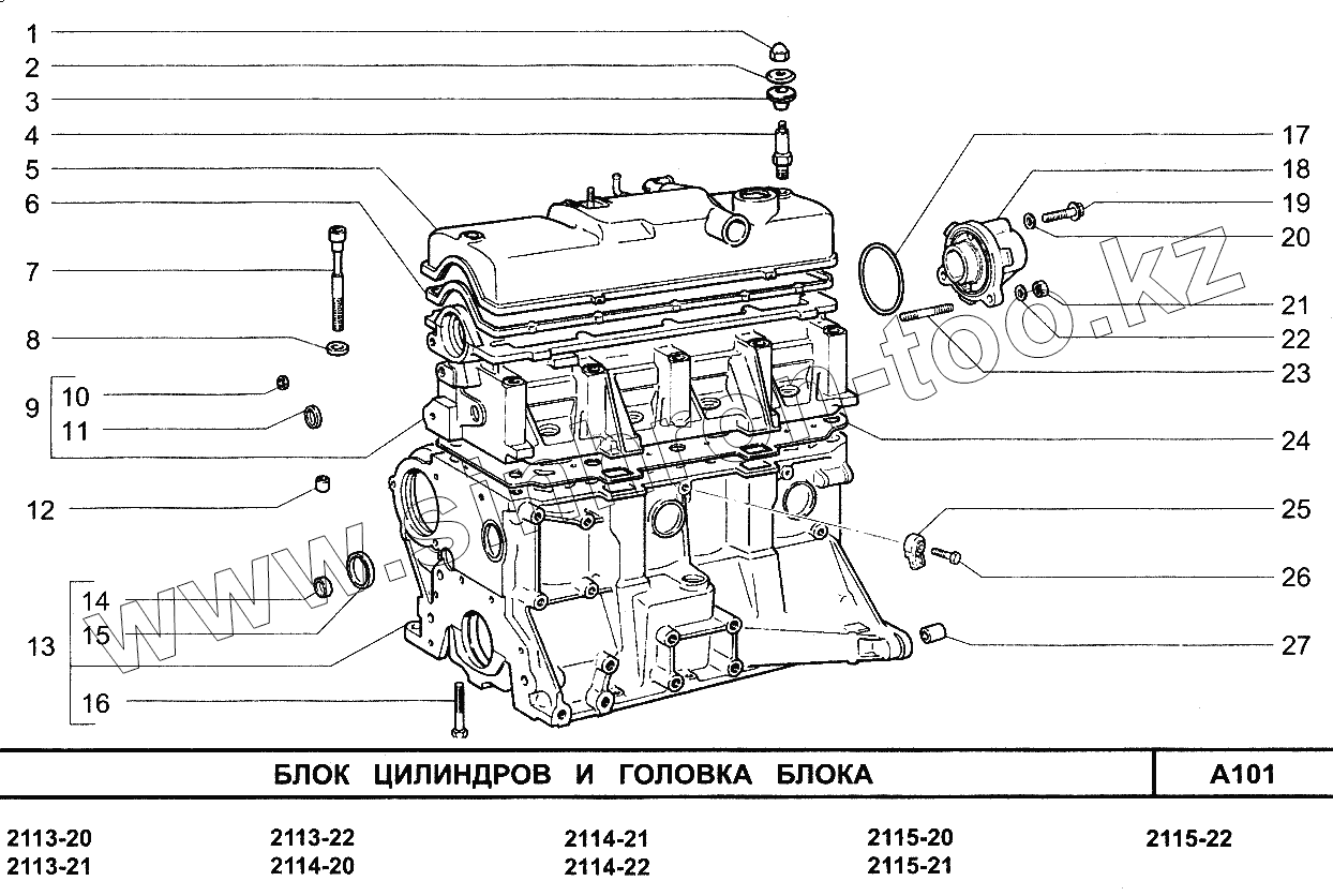 Каталог запасных частей к технике: ВАЗ-2113. Блок цилиндров и головка блока