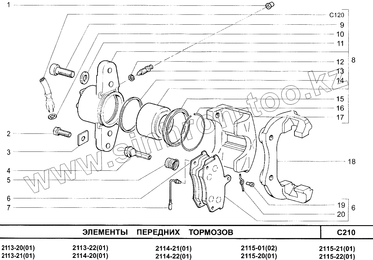 Каталог запасных частей к технике: ВАЗ-2113. Элементы передних тормозов