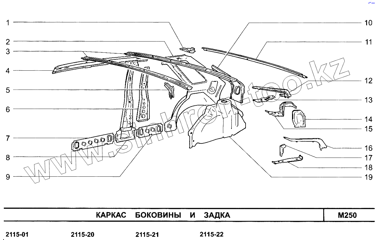 Каталог запасных частей к технике: ВАЗ-2113. Каркас боковины и задка