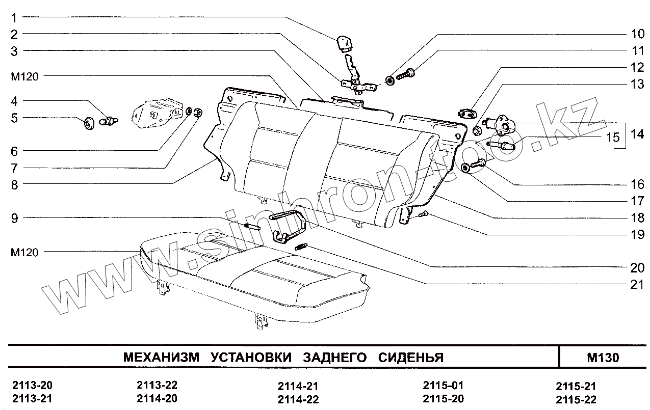 Каталог запасных частей к технике: ВАЗ-2113. Механизм установки заднего сиденья
