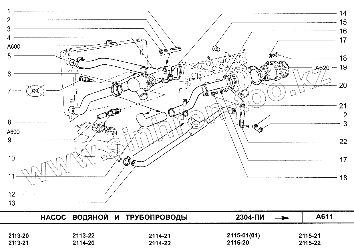 Каталог запасных частей к технике: ВАЗ-2113. Насос водяной и трубопроводы