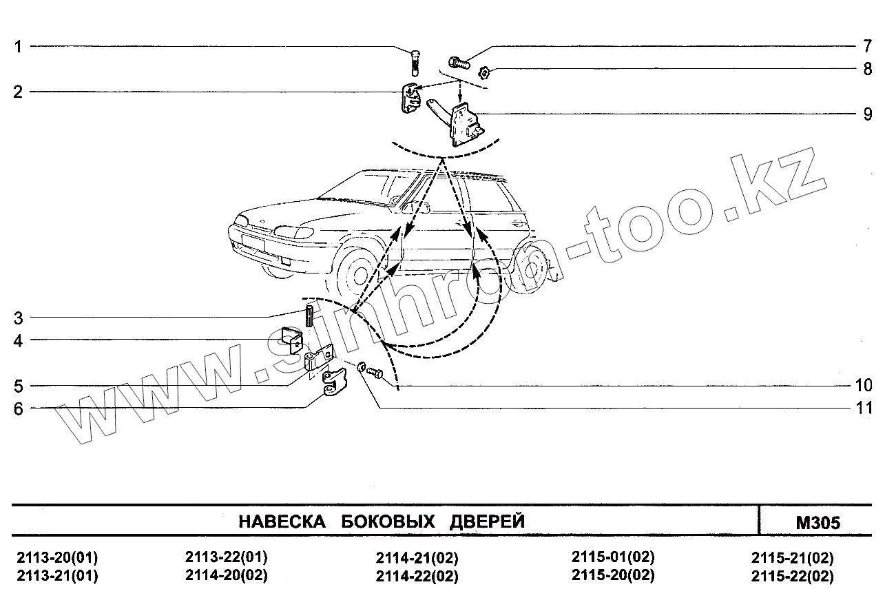Каталог запасных частей к технике: ВАЗ-2113. Навеска боковых дверей