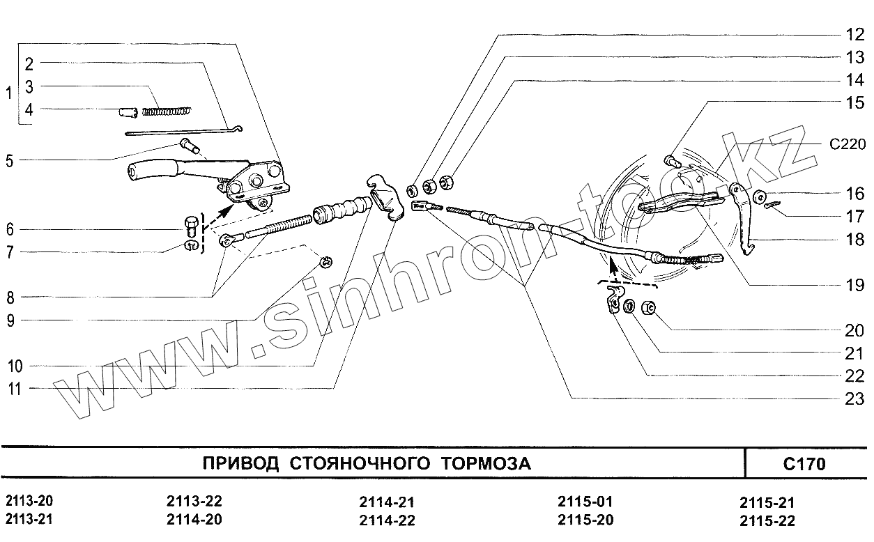 Каталог запасных частей к технике: ВАЗ-2113. Привод стояночного тормоза