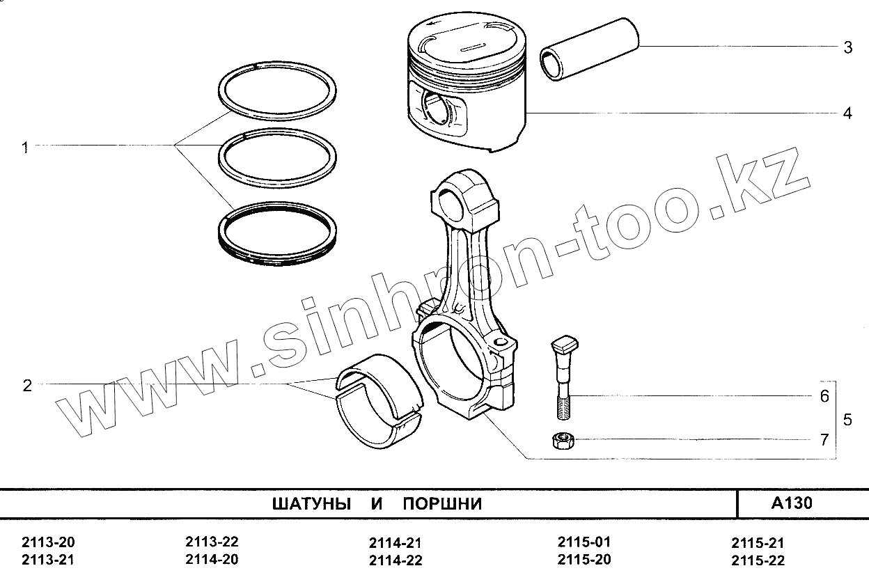 Каталог запасных частей к технике: ВАЗ-2113. Шатуны и поршни