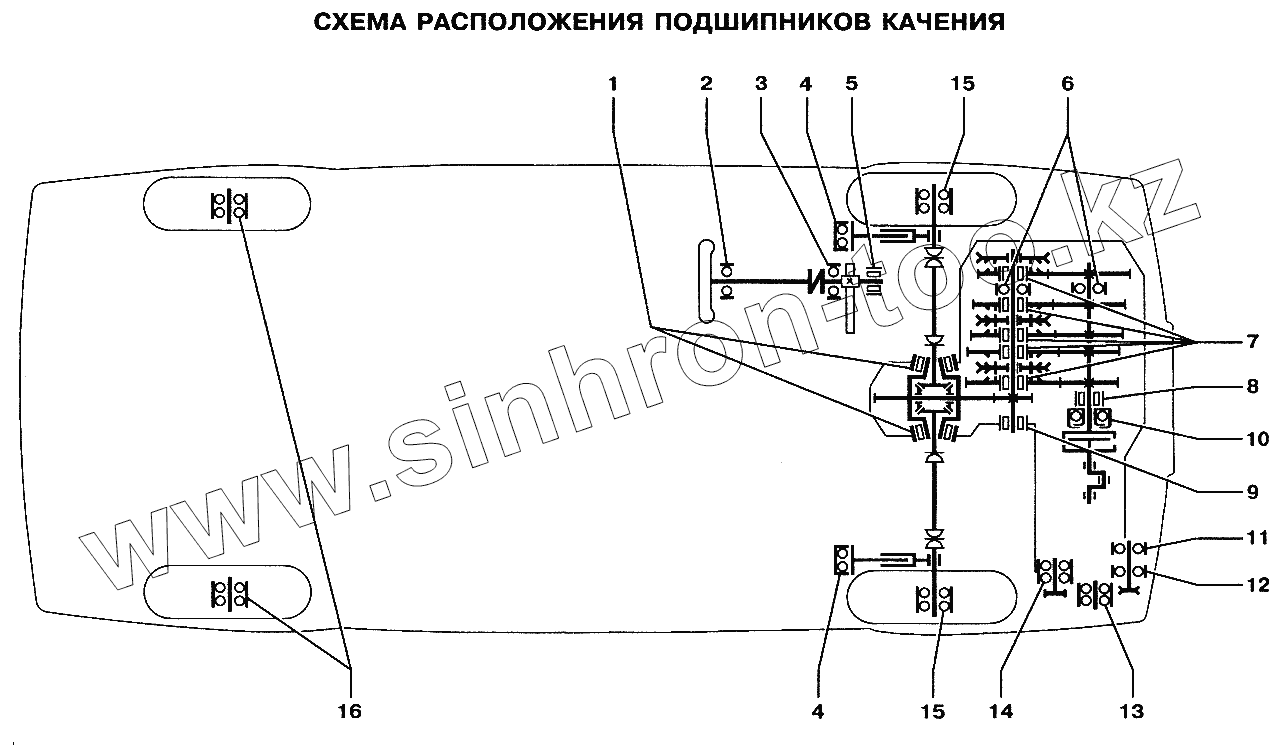 Каталог запасных частей к технике: ВАЗ-2113. Схема расположения подшипников качения