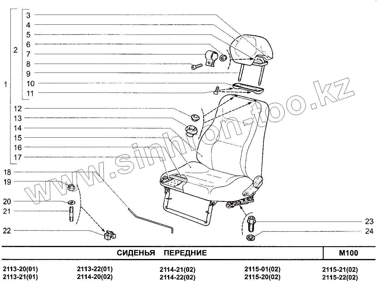 Каталог запасных частей к технике: ВАЗ-2113. Сиденья передние