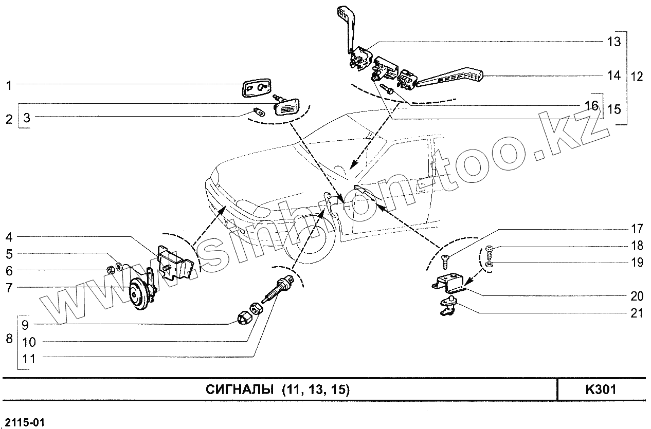 Каталог запасных частей к технике: ВАЗ-2113. Сигналы (11, 13, 15)