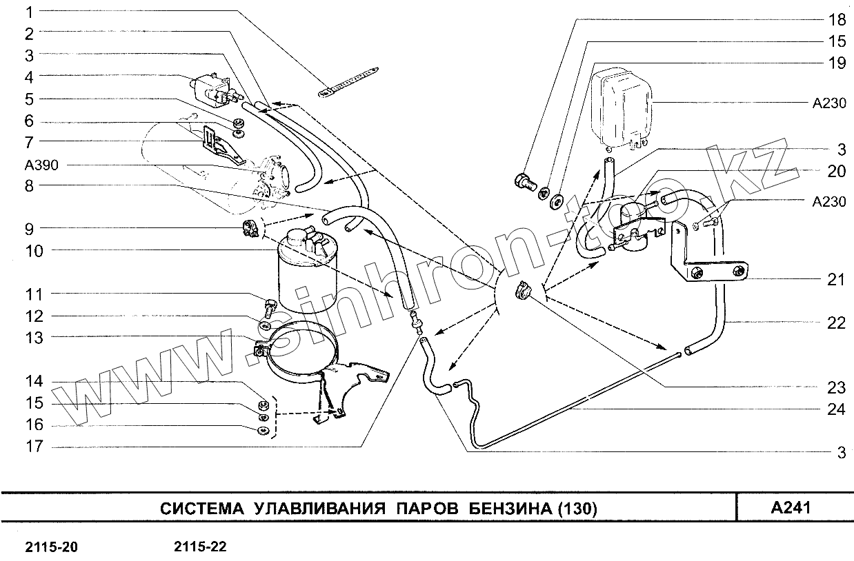 Каталог запасных частей к технике: ВАЗ-2113. Система улавливания паров бензина (130)