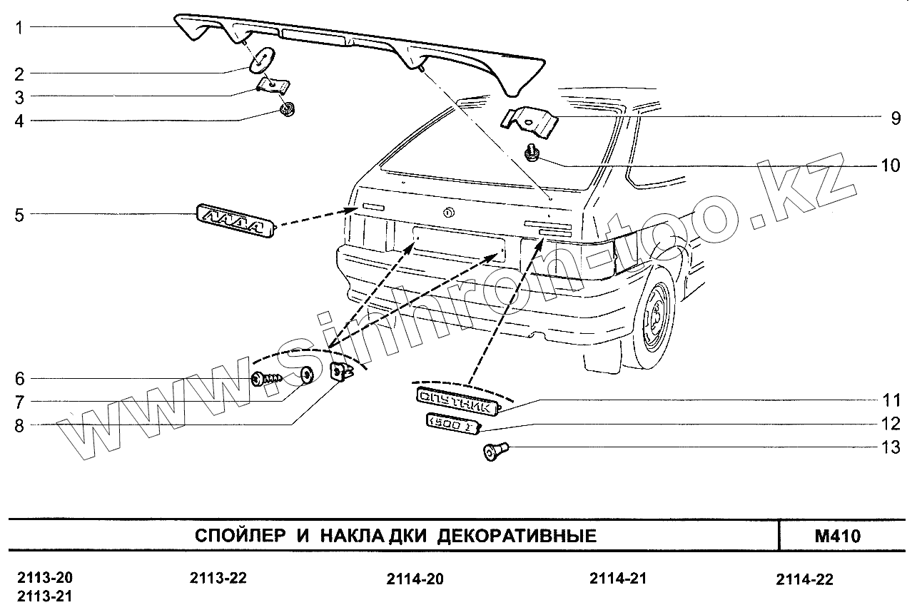 Каталог запасных частей к технике: ВАЗ-2113. Спойлер и накладки декоративные
