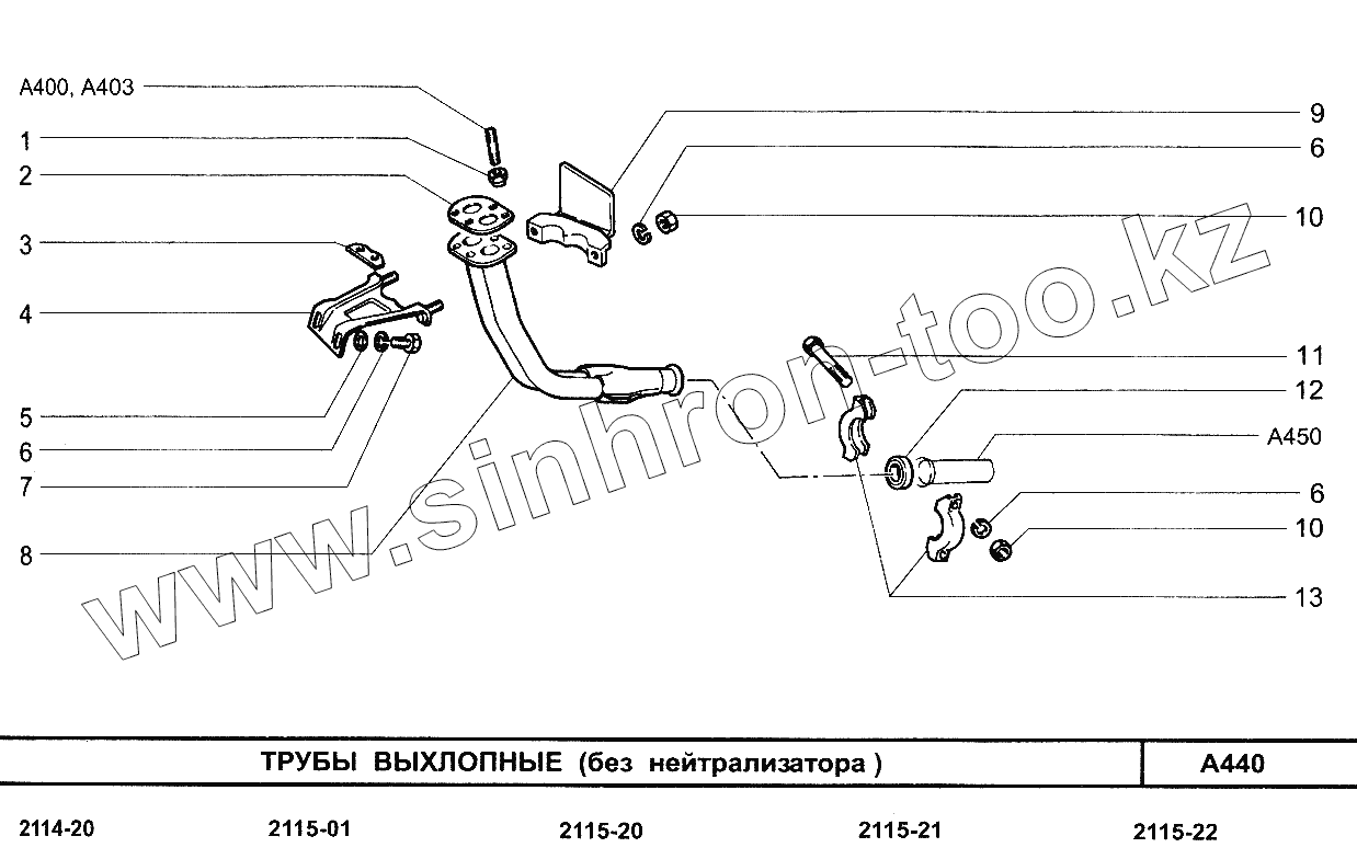 Каталог запасных частей к технике: ВАЗ-2113. Трубы выхлопные (без нейтрализатора)