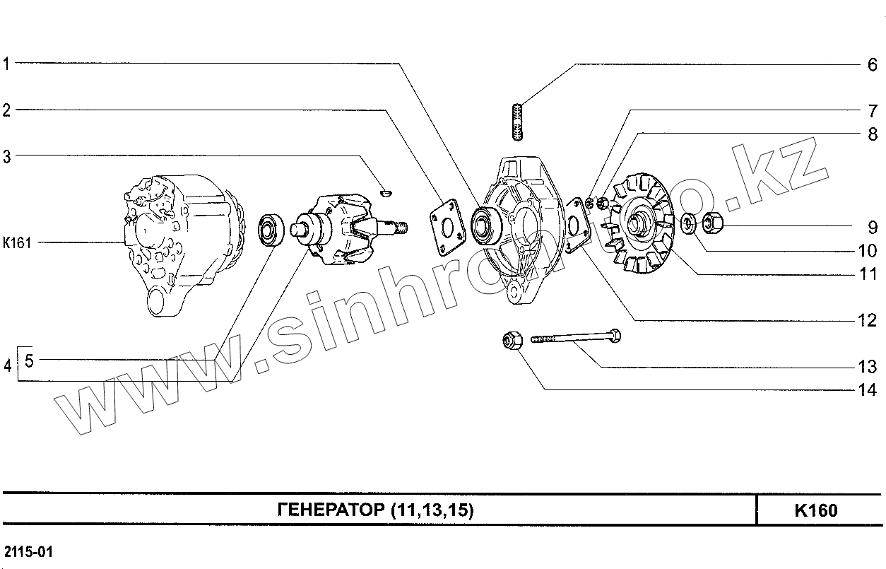 Каталог запасных частей к технике: ВАЗ-2114. Генератор (11, 13, 15)