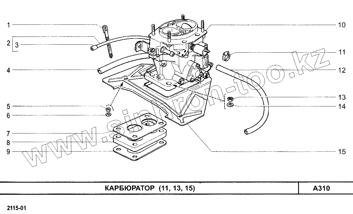 Каталог запасных частей к технике: ВАЗ-2114. Карбюратор (11, 13, 15)