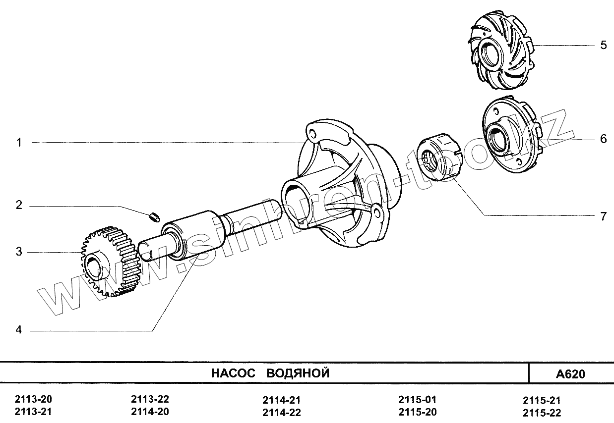 Каталог запасных частей к технике: ВАЗ-2114. Насос водяной